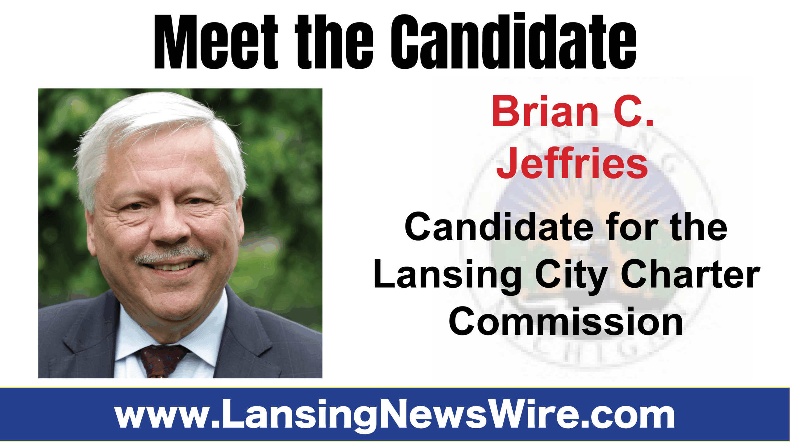 The Lansing News Wire had a chance to catch up with Brian C. Jeffries candidate for the City of Lansing City Charter General Revision Commission election slated May 7. Here is what he had to say in Meet the Candidate Q&A: