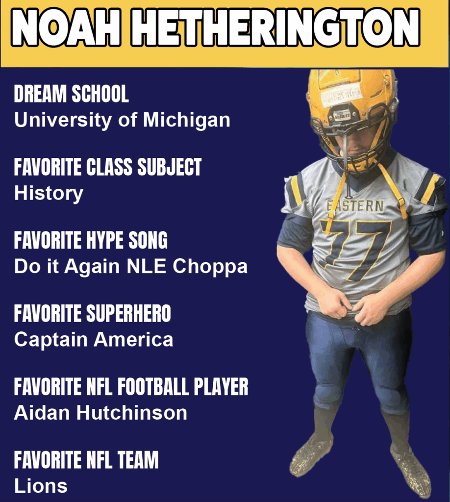 Noah Hetherington, a sophomore at Eastern High School holds down the line as both center and defensive end. Get to know Noah in this Q&A as he shares his experiences on and off the field.